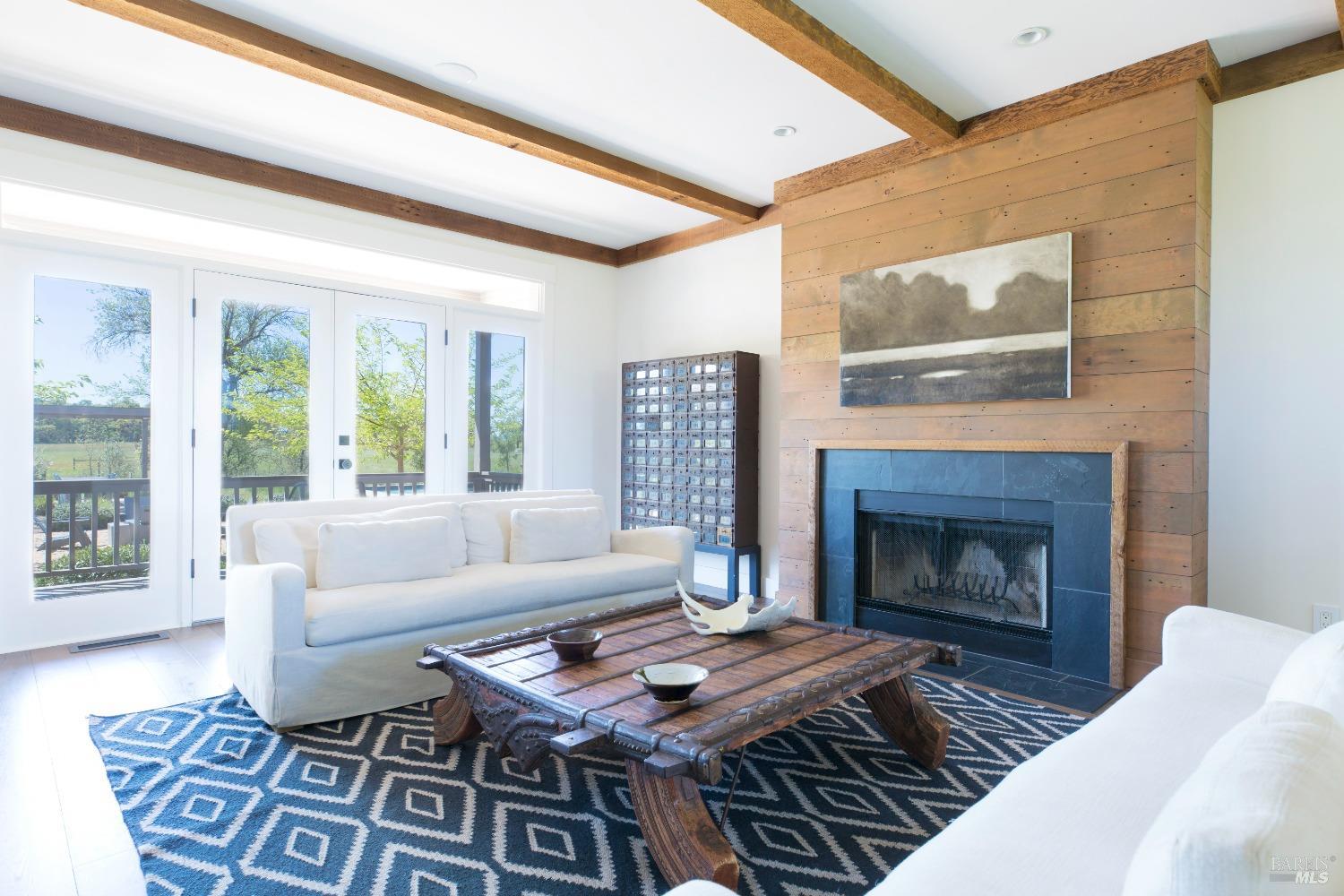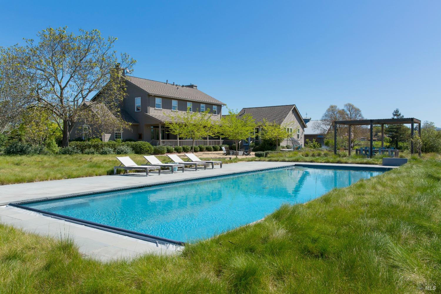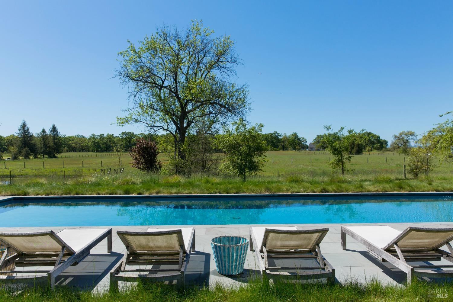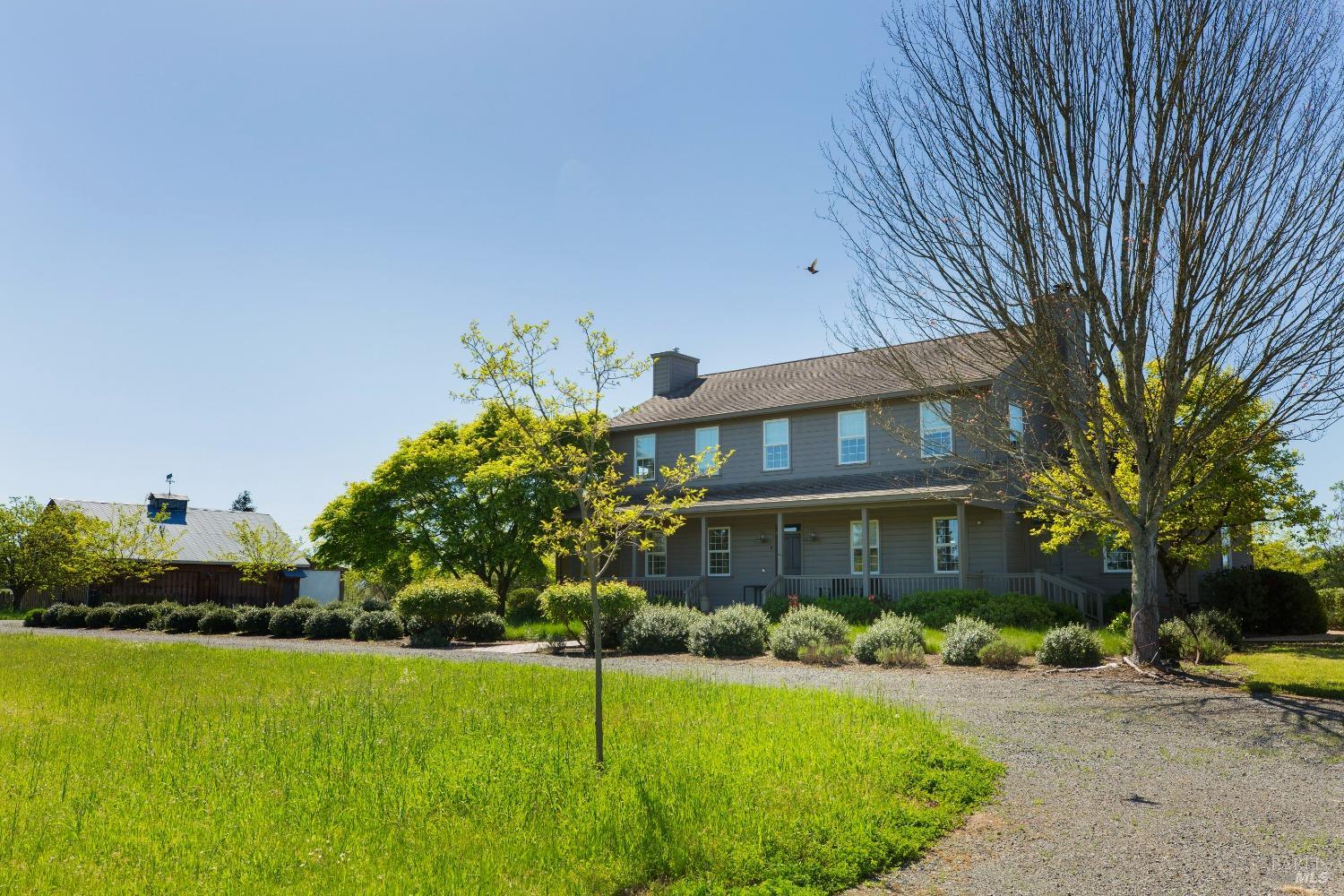 Welcome to Longfield Farm - a quintessential renovated farmhouse & barn that perfectly embodies the charm of wine country. This meticulously upgraded 4-bedroom residence spans two levels & boasts an ideal floor plan that blends modern comforts w/ rustic elegance. The residence's unique design features, including warm-toned exposed wood beam ceilings & beautifully reclaimed wood-paneled walls evoke a welcoming ambiance. Walls of windows create great light throughout w/ pastoral outlooks to the surrounding vineyards. Main level includes Great Room w/ country-style kitchen, eat-in dining & family room; primary suite w/ office; formal living room w/ fireplace, intimate dining room and library/office - all w/ French doors leading to outdoors. Upper-level has 1 ensuite bdrm and 2 additional bdrms w/ shared bath. Fabulous entertaining spaces w/ outdoor amenities including a private pond, bocce court, inviting pool w/ bath & changing room, fire pit & outdoor dining terrace. The enchanting barn has plenty of options as a car-barn, workshop or party barn for special gatherings.Expansive views, flat topography, useable land w/ white picket fence enclosing meadows for possible vineyards or animals. Conveniently located 15 mins to Mayacama Golf Club & Healdsburg, approx 1 hr to San Francisco.