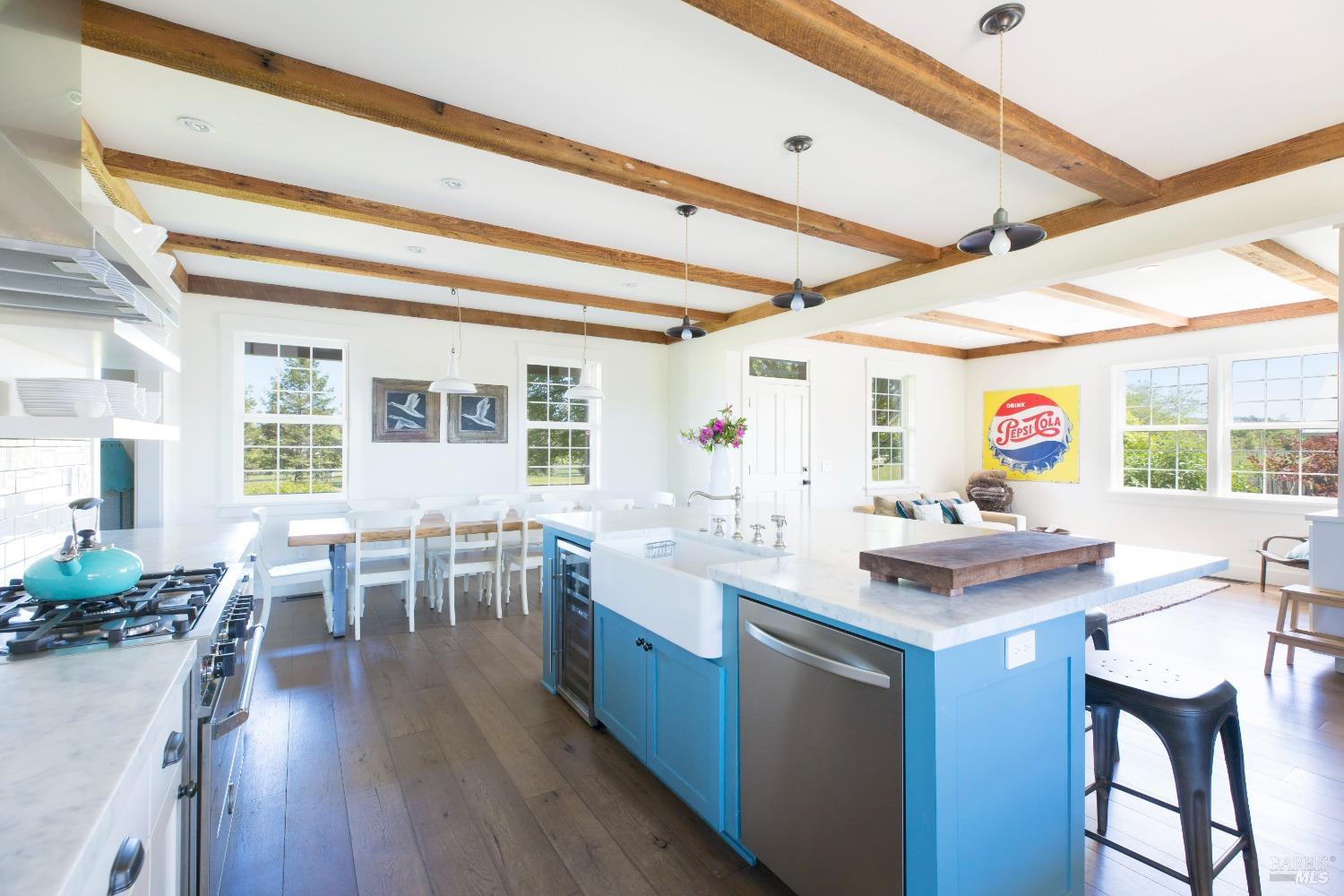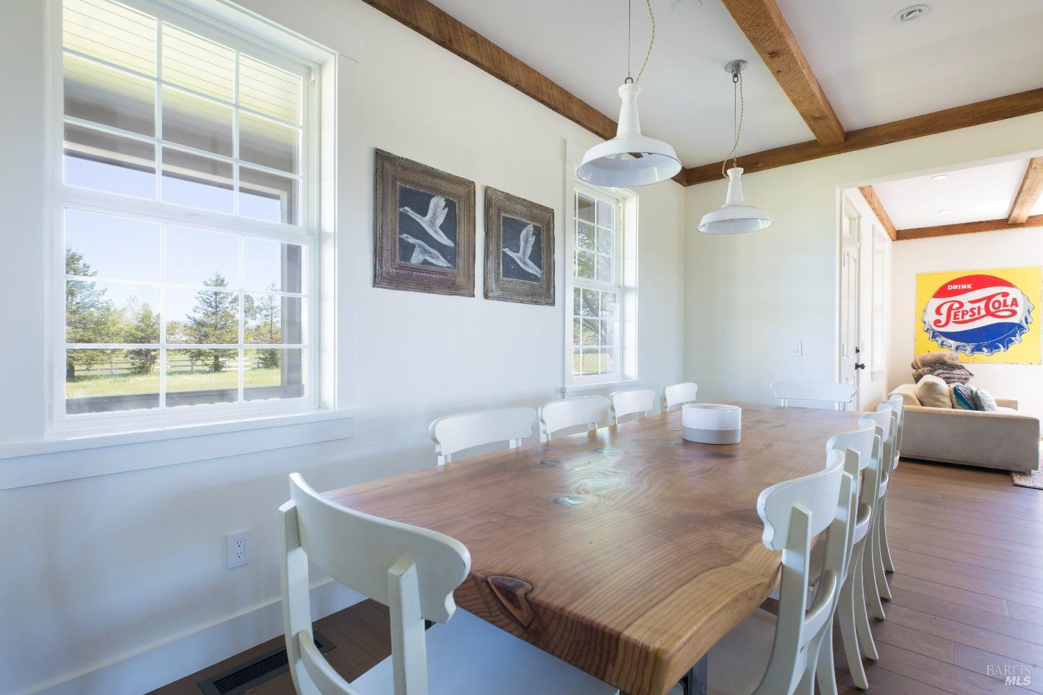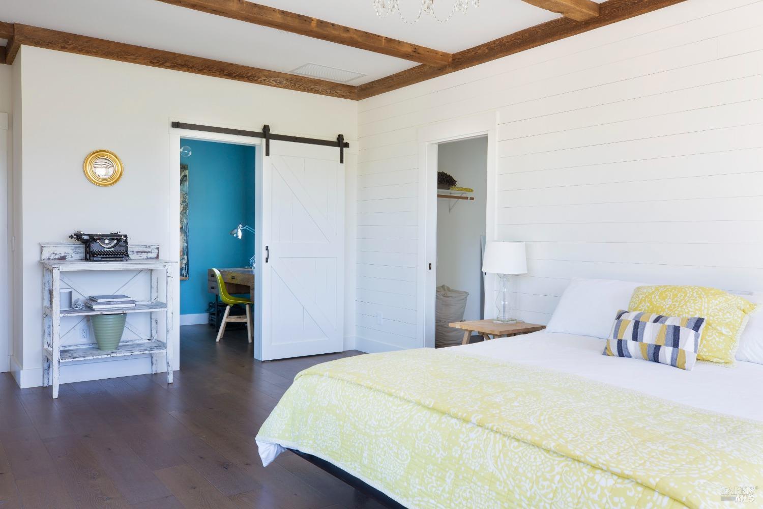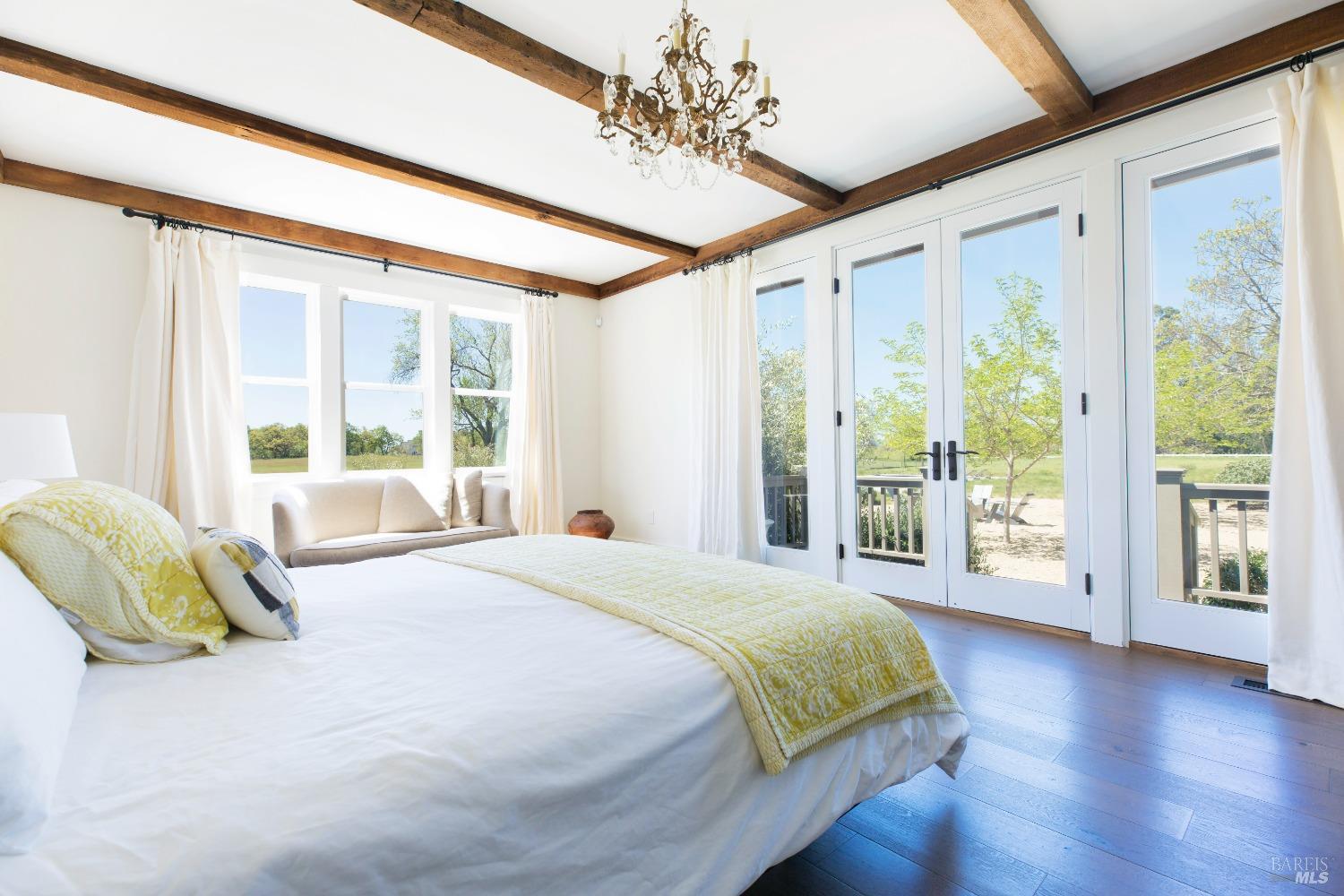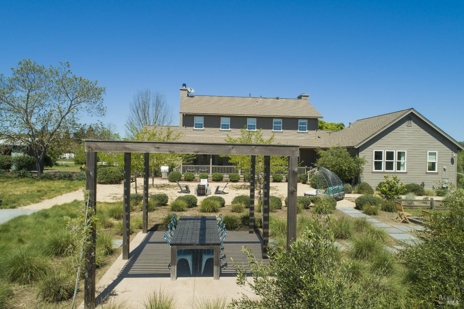 Welcome to Longfield Farm - a quintessential renovated farmhouse & barn that perfectly embodies the charm of wine country. This meticulously upgraded 4-bedroom residence spans two levels & boasts an ideal floor plan that blends modern comforts w/ rustic elegance. The residence's unique design features, including warm-toned exposed wood beam ceilings & beautifully reclaimed wood-paneled walls evoke a welcoming ambiance. Walls of windows create great light throughout w/ pastoral outlooks to the surrounding vineyards. Main level includes Great Room w/ country-style kitchen, eat-in dining & family room; primary suite w/ office; formal living room w/ fireplace, intimate dining room and library/office - all w/ French doors leading to outdoors. Upper-level has 1 ensuite bdrm and 2 additional bdrms w/ shared bath. Fabulous entertaining spaces w/ outdoor amenities including a private pond, bocce court, inviting pool w/ bath & changing room, fire pit & outdoor dining terrace. The enchanting barn has plenty of options as a car-barn, workshop or party barn for special gatherings.Expansive views, flat topography, useable land w/ white picket fence enclosing meadows for possible vineyards or animals. Conveniently located 15 mins to Mayacama Golf Club & Healdsburg, approx 1 hr to San Francisco.