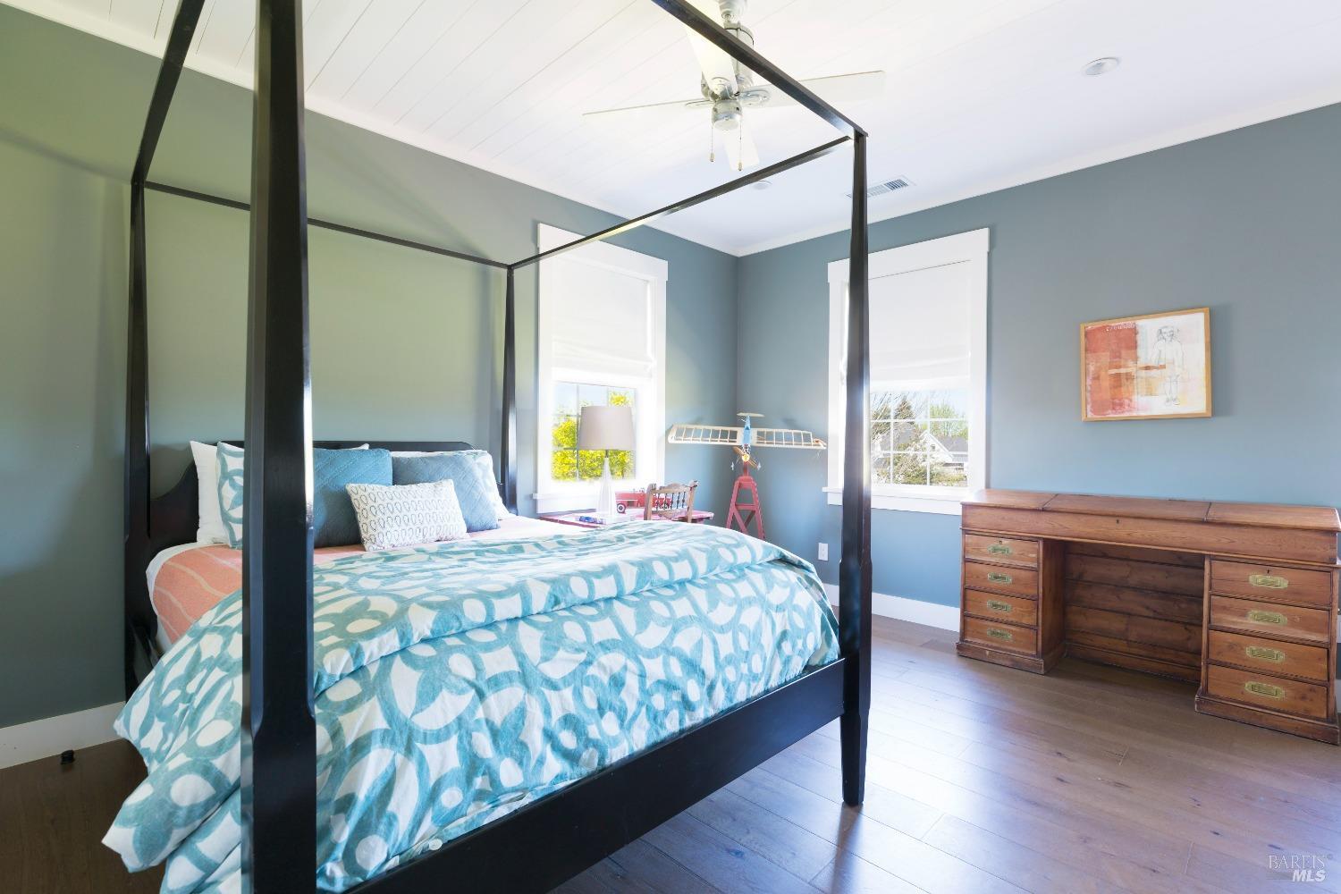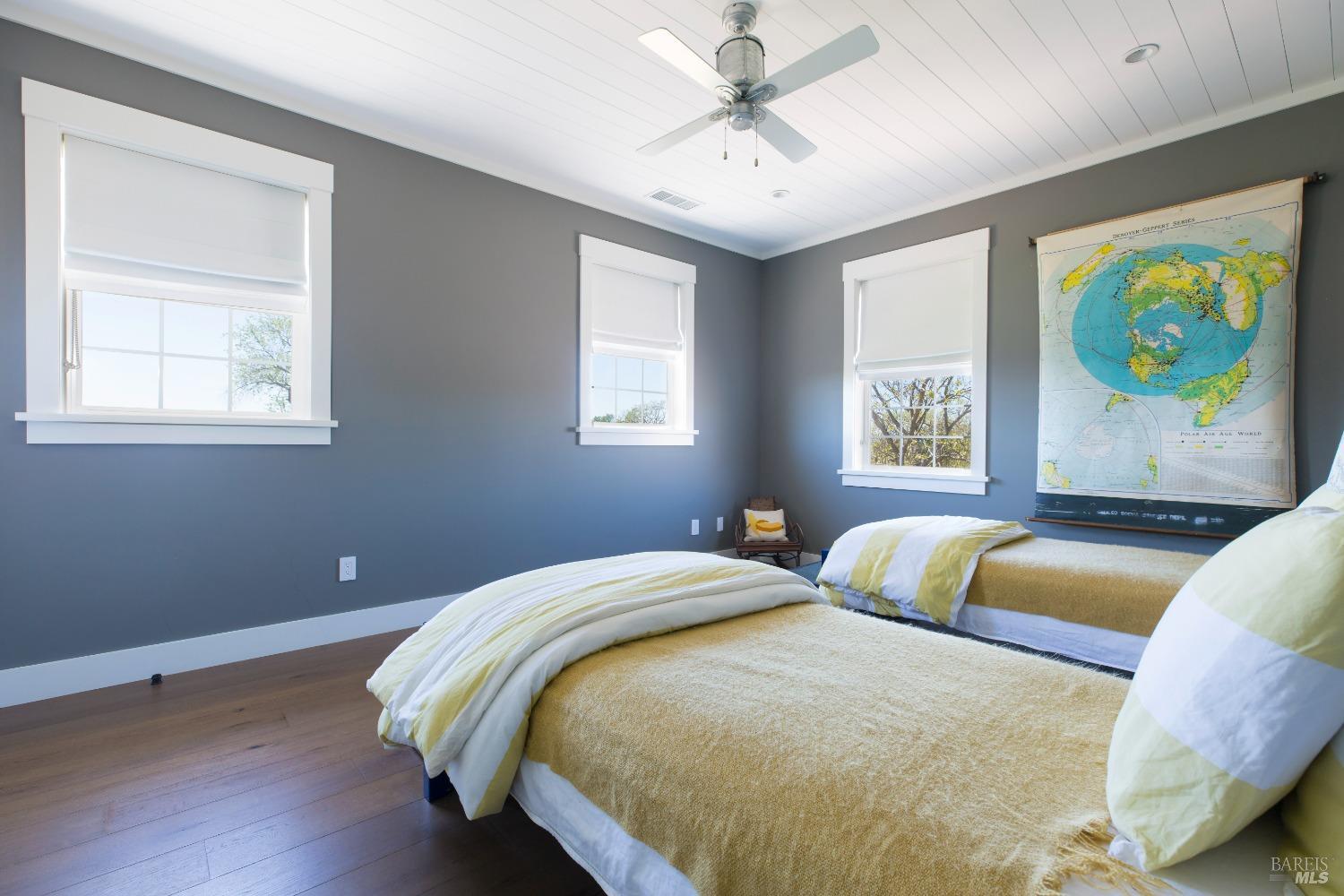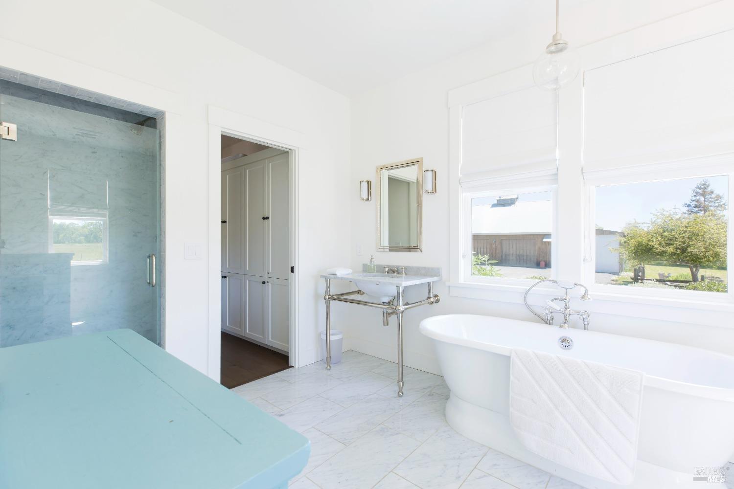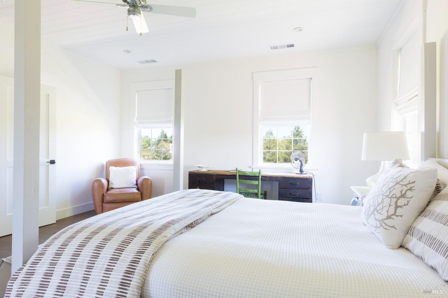 Welcome to Longfield Farm - a quintessential renovated farmhouse & barn that perfectly embodies the charm of wine country. This meticulously upgraded 4-bedroom residence spans two levels & boasts an ideal floor plan that blends modern comforts w/ rustic elegance. The residence's unique design features, including warm-toned exposed wood beam ceilings & beautifully reclaimed wood-paneled walls evoke a welcoming ambiance. Walls of windows create great light throughout w/ pastoral outlooks to the surrounding vineyards. Main level includes Great Room w/ country-style kitchen, eat-in dining & family room; primary suite w/ office; formal living room w/ fireplace, intimate dining room and library/office - all w/ French doors leading to outdoors. Upper-level has 1 ensuite bdrm and 2 additional bdrms w/ shared bath. Fabulous entertaining spaces w/ outdoor amenities including a private pond, bocce court, inviting pool w/ bath & changing room, fire pit & outdoor dining terrace. The enchanting barn has plenty of options as a car-barn, workshop or party barn for special gatherings.Expansive views, flat topography, useable land w/ white picket fence enclosing meadows for possible vineyards or animals. Conveniently located 15 mins to Mayacama Golf Club & Healdsburg, approx 1 hr to San Francisco.