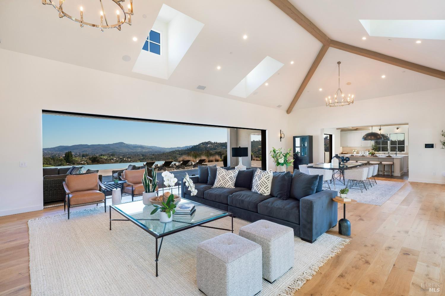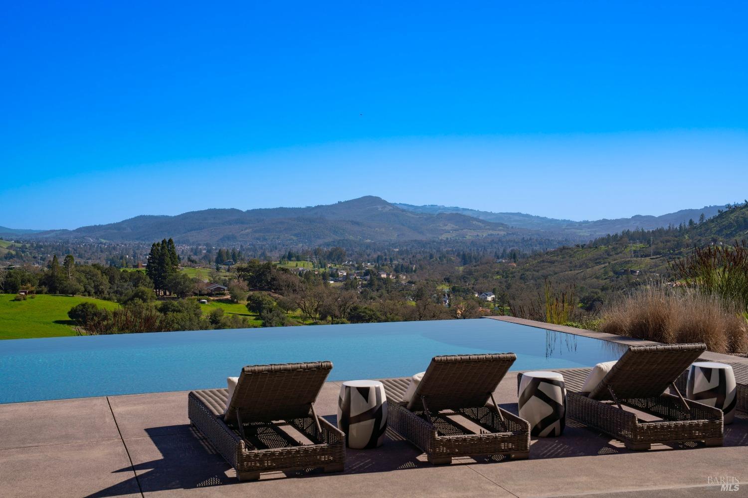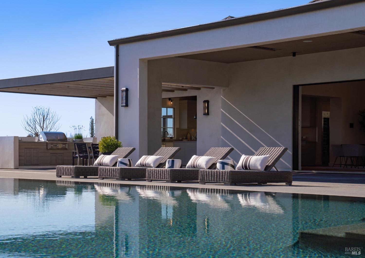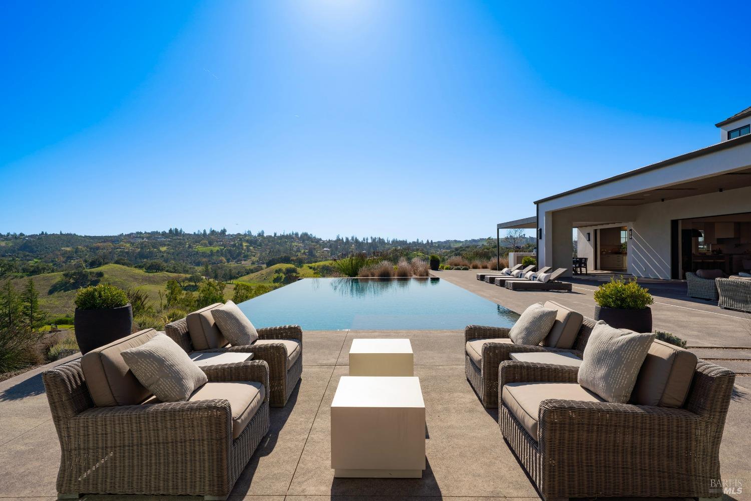 Stunning contemporary home set in the lower hills of Foothill Ranch features breathtaking views. Luxury & superb design combine with exceptional value for the discerning buyer looking for a new home. The 5,600+/- sf gated estate features 4 ensuite bedrooms & media room in the main residence, plus a detached pool house w/bath, kitchenette, and flexible space for an office or gym. A private entry courtyard with a vanishing edge fountain welcomes guests. The open, single-level floor plan boasts lofty ceilings and broad hallways, centered around an impressive Great Room separating public and private spaces. Chef-inspired kitchen, designed for culinary enthusiasts, blends performance with elegant design; Thermador appliances, dual-column wine refrigerator, 6-burner gas range, two islands with a prep sink and bar seating. Glass pocket doors open to expansive outdoor living spaces, perfect for entertaining. Amenities include 20' x 40' infinity-edge pool, smart home technology, integrated speakers, covered & heated TV lounge, built-in BBQ, bocce ball court, and firepit. The 5BR septic allows for an ADU. Located minutes from shopping, transportation and wineries, the home offers access to hiking trails, private lake, and a strong sense of community. A "Best in Class" opportunity.