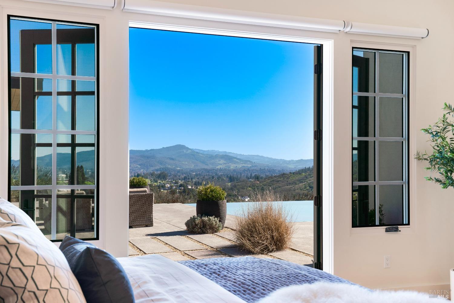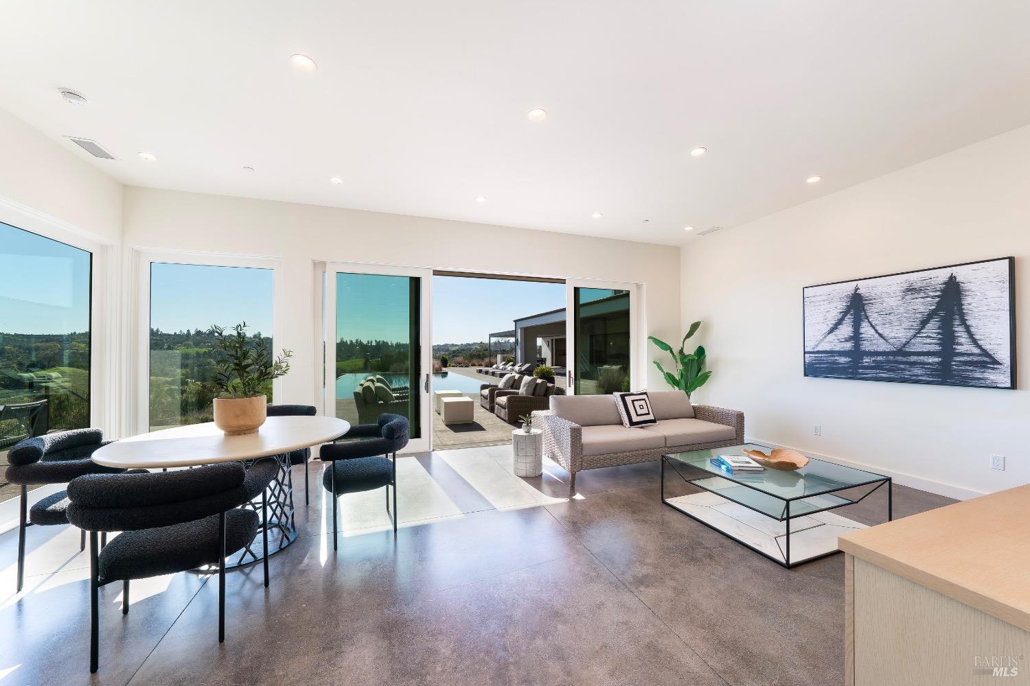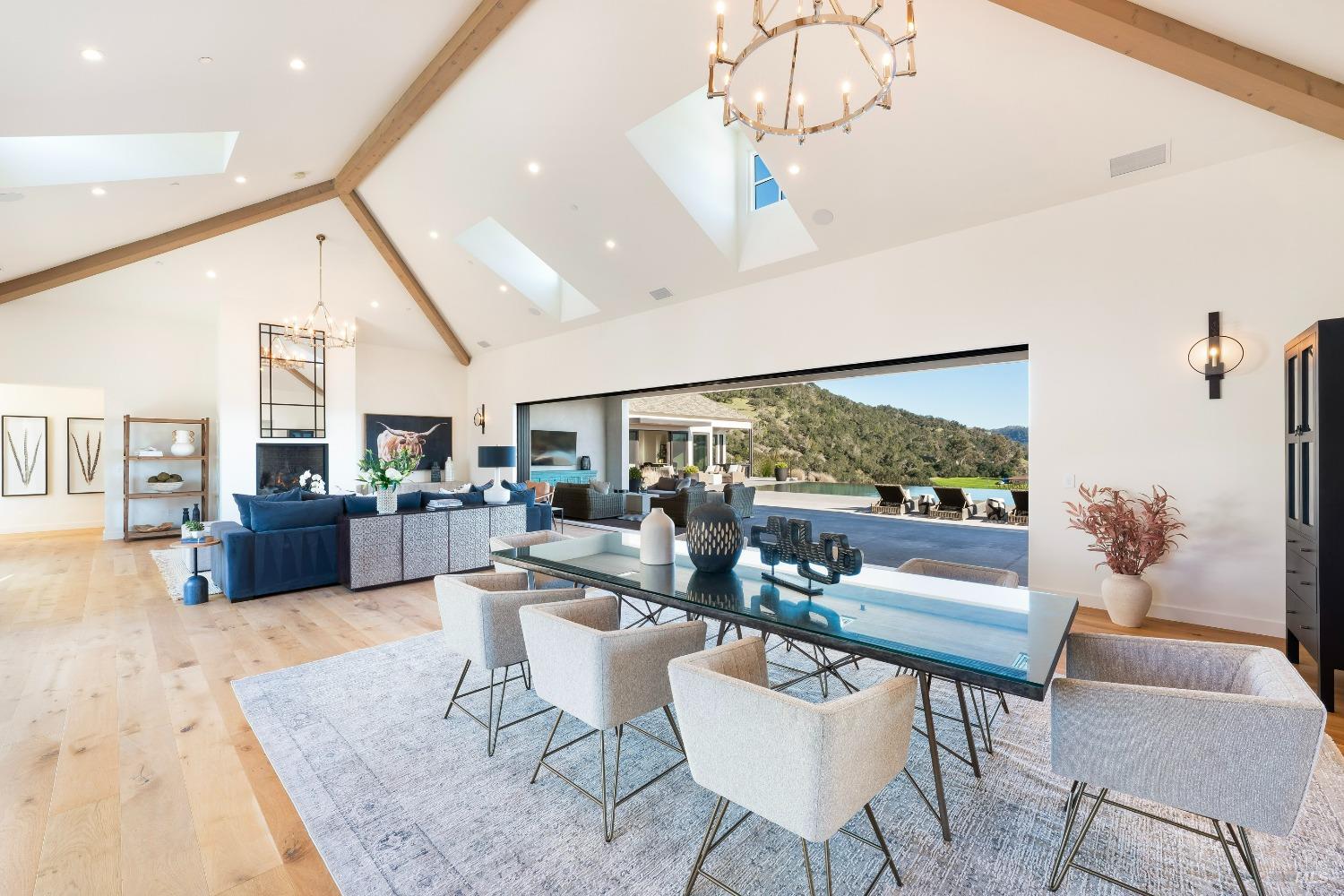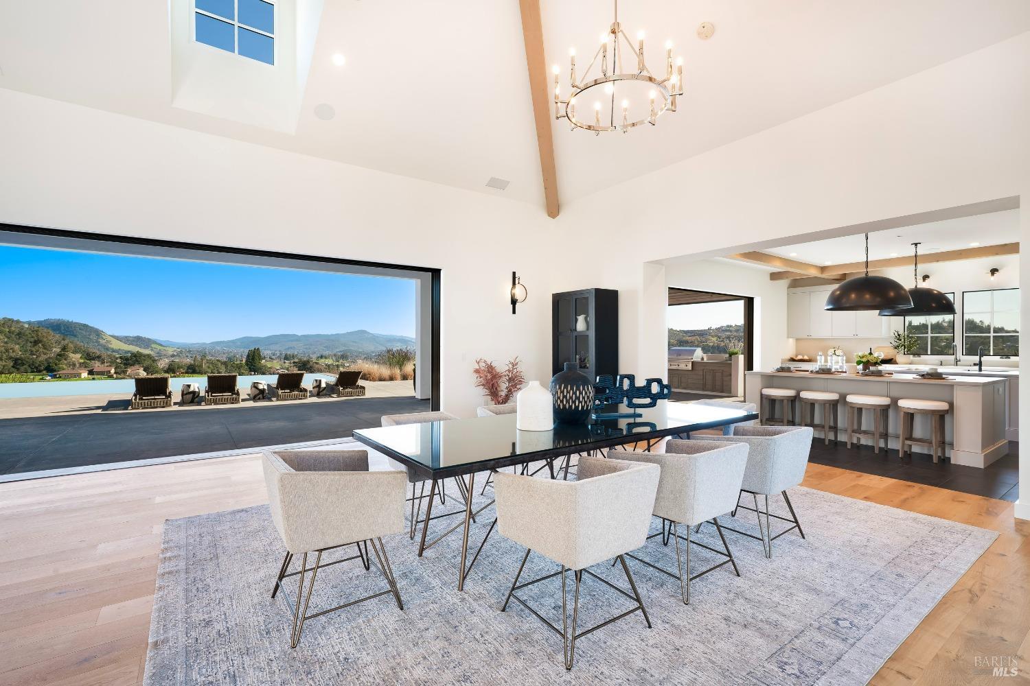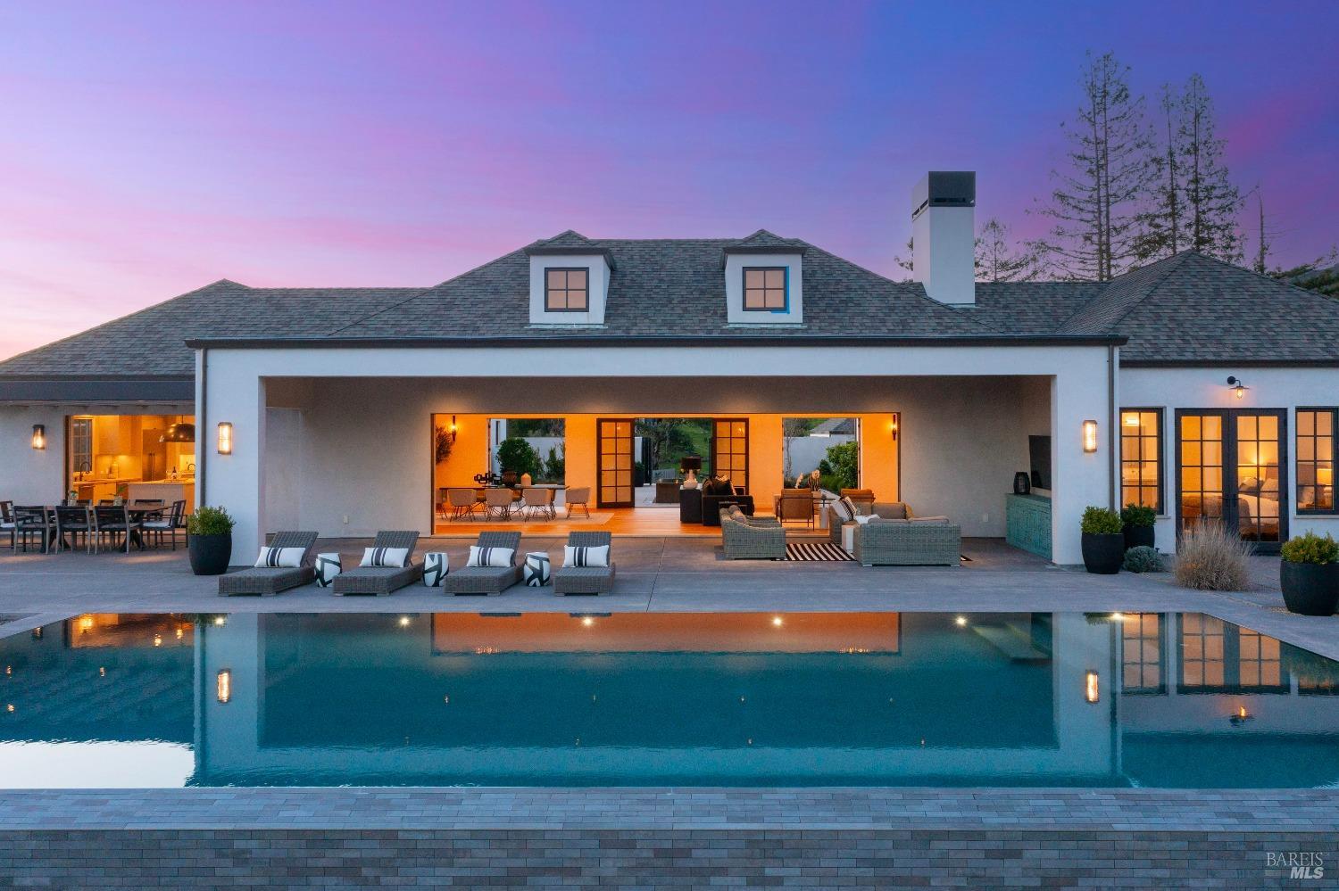 Stunning contemporary home set in the lower hills of Foothill Ranch features breathtaking views. Luxury & superb design combine with exceptional value for the discerning buyer looking for a new home. The 5,600+/- sf gated estate features 4 ensuite bedrooms & media room in the main residence, plus a detached pool house w/bath, kitchenette, and flexible space for an office or gym. A private entry courtyard with a vanishing edge fountain welcomes guests. The open, single-level floor plan boasts lofty ceilings and broad hallways, centered around an impressive Great Room separating public and private spaces. Chef-inspired kitchen, designed for culinary enthusiasts, blends performance with elegant design; Thermador appliances, dual-column wine refrigerator, 6-burner gas range, two islands with a prep sink and bar seating. Glass pocket doors open to expansive outdoor living spaces, perfect for entertaining. Amenities include 20' x 40' infinity-edge pool, smart home technology, integrated speakers, covered & heated TV lounge, built-in BBQ, bocce ball court, and firepit. The 5BR septic allows for an ADU. Located minutes from shopping, transportation and wineries, the home offers access to hiking trails, private lake, and a strong sense of community. A "Best in Class" opportunity.