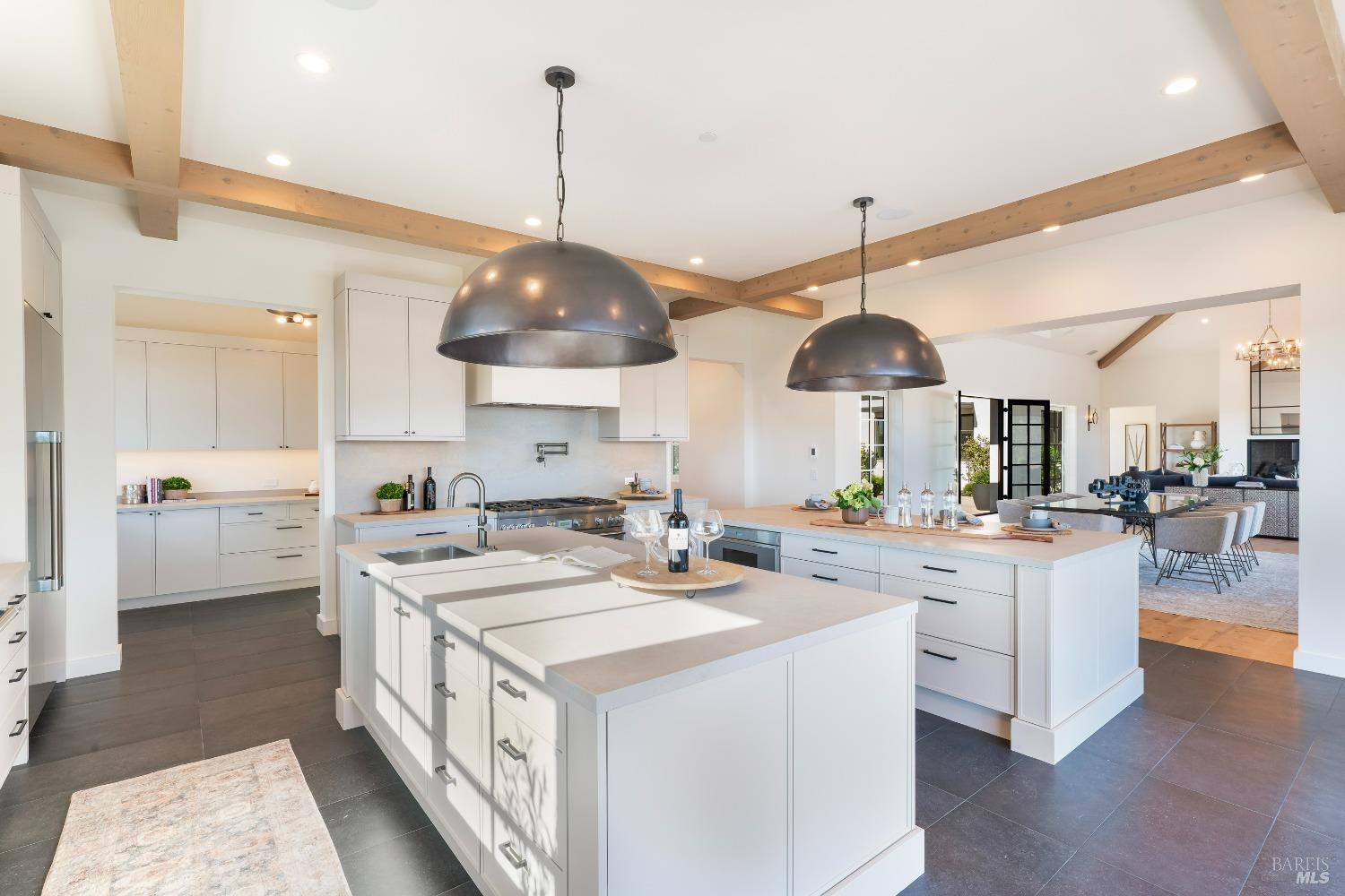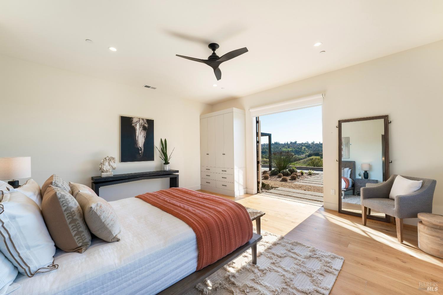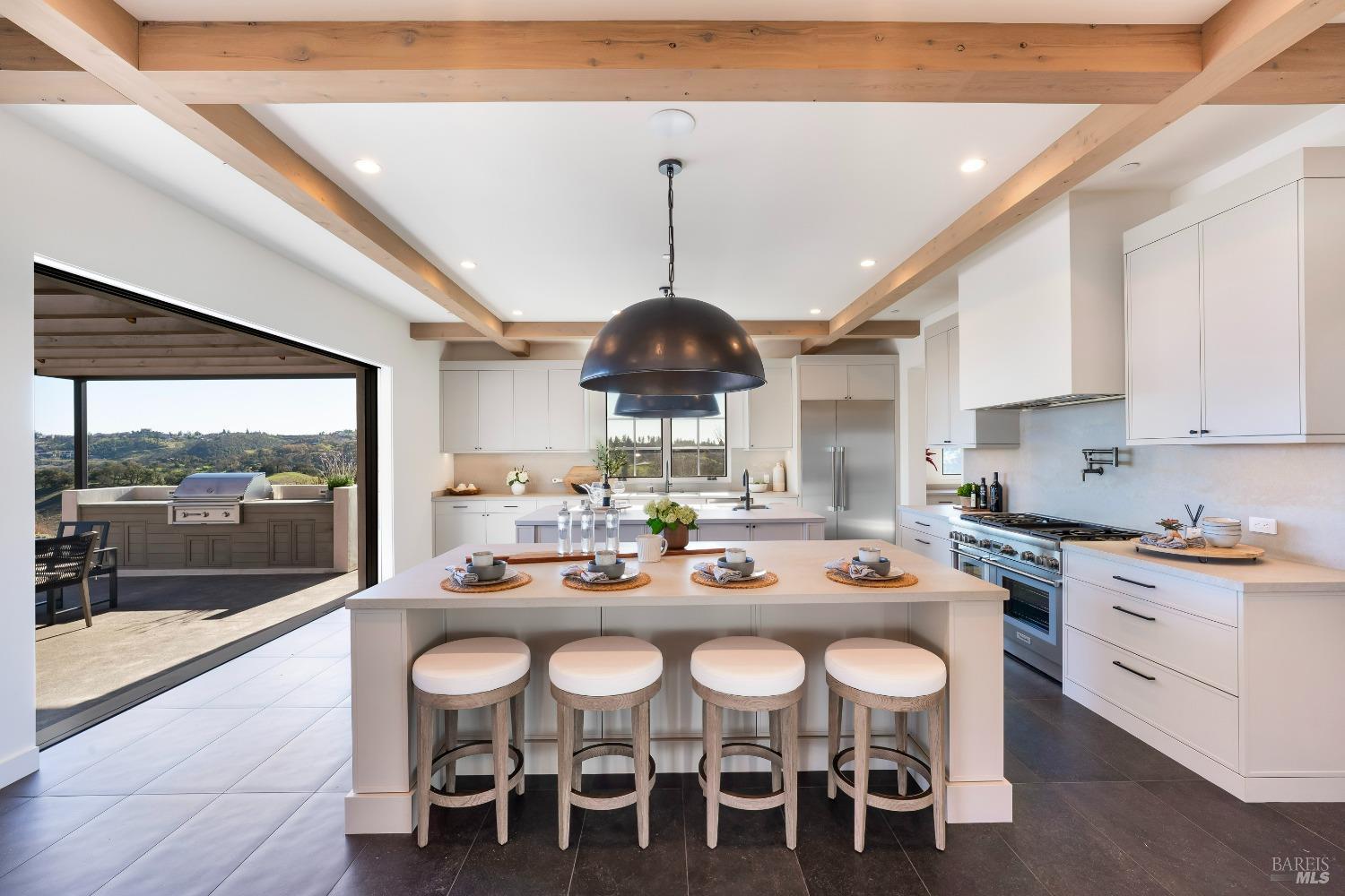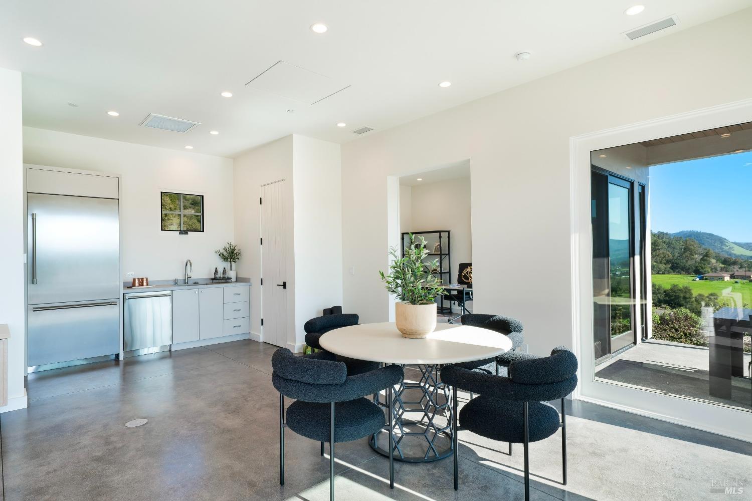 Stunning contemporary home set in the lower hills of Foothill Ranch features breathtaking views. Luxury & superb design combine with exceptional value for the discerning buyer looking for a new home. The 5,600+/- sf gated estate features 4 ensuite bedrooms & media room in the main residence, plus a detached pool house w/bath, kitchenette, and flexible space for an office or gym. A private entry courtyard with a vanishing edge fountain welcomes guests. The open, single-level floor plan boasts lofty ceilings and broad hallways, centered around an impressive Great Room separating public and private spaces. Chef-inspired kitchen, designed for culinary enthusiasts, blends performance with elegant design; Thermador appliances, dual-column wine refrigerator, 6-burner gas range, two islands with a prep sink and bar seating. Glass pocket doors open to expansive outdoor living spaces, perfect for entertaining. Amenities include 20' x 40' infinity-edge pool, smart home technology, integrated speakers, covered & heated TV lounge, built-in BBQ, bocce ball court, and firepit. The 5BR septic allows for an ADU. Located minutes from shopping, transportation and wineries, the home offers access to hiking trails, private lake, and a strong sense of community. A "Best in Class" opportunity.