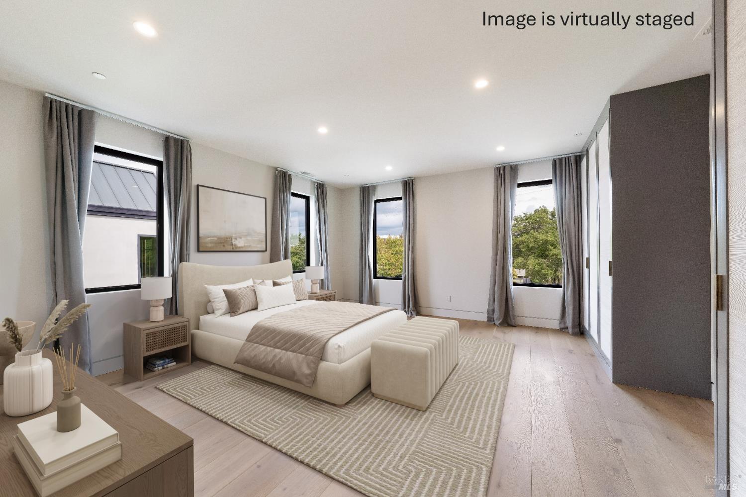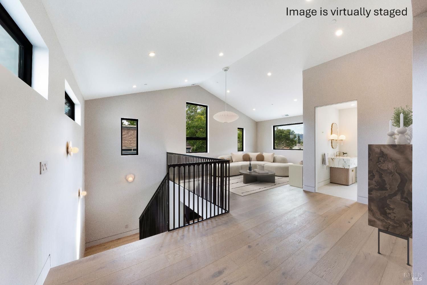 Beautifully crafted 4-bedroom home w/ separate 1-bedroom/1.5 bath ADU, on approx .3 acres just minutes from the vibrant Healdsburg Plaza. Completed in 2025, main residence blends comfort, functionality, & clean contemporary design. The layout is ideal for modern living, featuring a luxurious main-level primary suite that offers ease & privacy. Bright interiors are enhanced by high ceilings, statement fireplace, & expansive windows that frame the outdoor landscape. The main home includes gracious bedrooms, 4 full & 2 half baths, home office (or 4th bedroom suite) & intimate library. The well-appointed kitchen features Miele appliances, coffee system/bar area, beverage/wine coolers & elegant cabinetry. The adjacent butler's pantry w/sink, extra refrigerator & ample storage, paired with the inviting dining & living area makes this home perfect for gatherings. Folding doors open to the patios & inviting lawn/garden (or potential pool). The ADU above the 2-car garage provides a versatile space for guests or family, offering a private entrance w/ its own kitchen, living & dining area, laundry, powder room, plus 1-bedroom suite. Combining smart design w/prime in-town location, this home is perfect for those seeking a flexible floor plan, refined finishes & the ease of Healdsburg living. Some images have been digitally enhanced. Those and all unaltered images are available in the photo gallery.